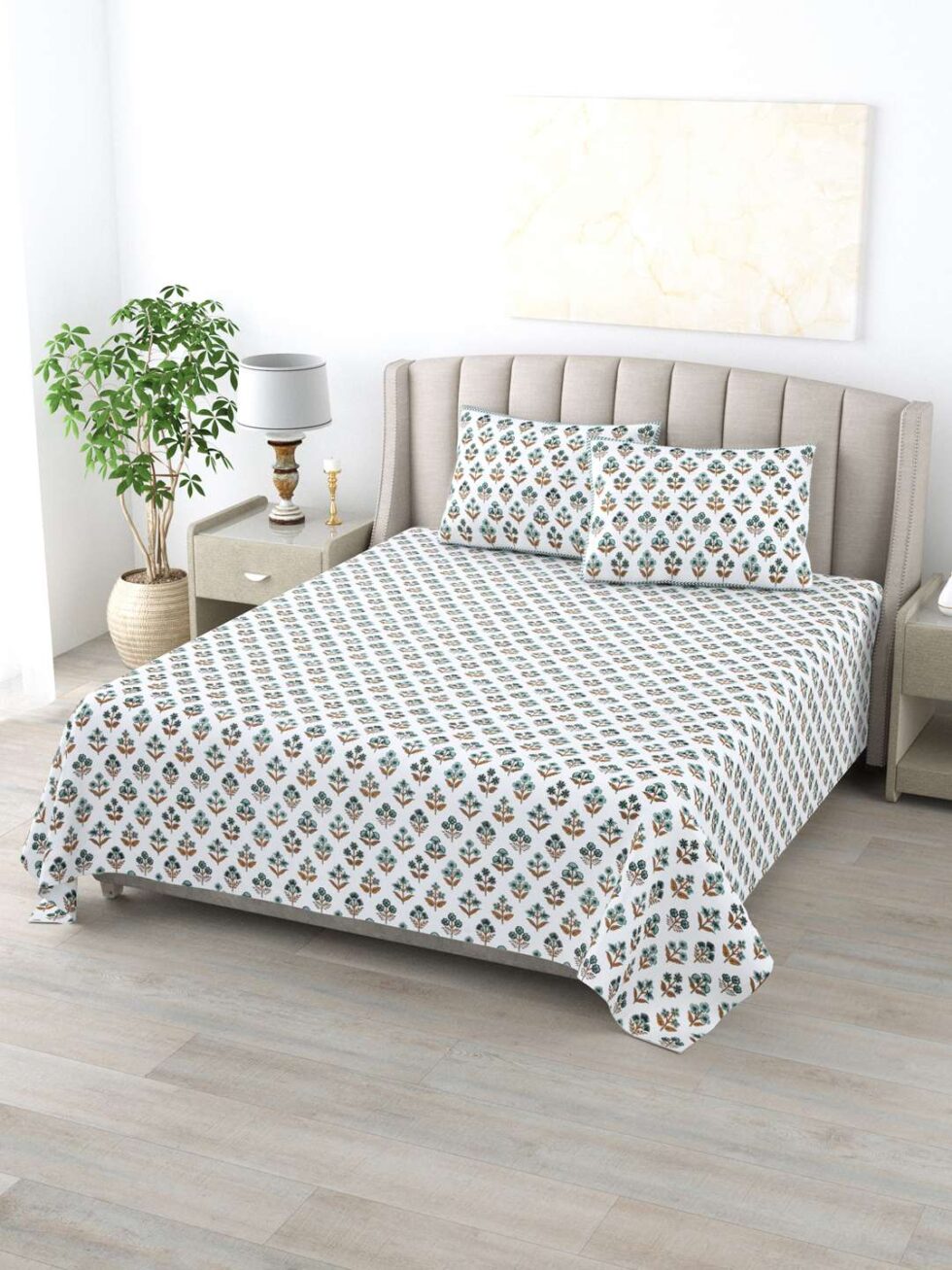 100% Pure Cotton Traditional Printed Bedsheet for Double Bed King Size Bedsheet with 2 Pillow Covers